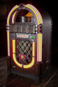The Wurlitzer jukebox is an iconic, art deco-designed machine known for its colorful lights and powerful sound, playing vinyl records. It became a symbol of mid-20th-century American culture.Created in 3ds