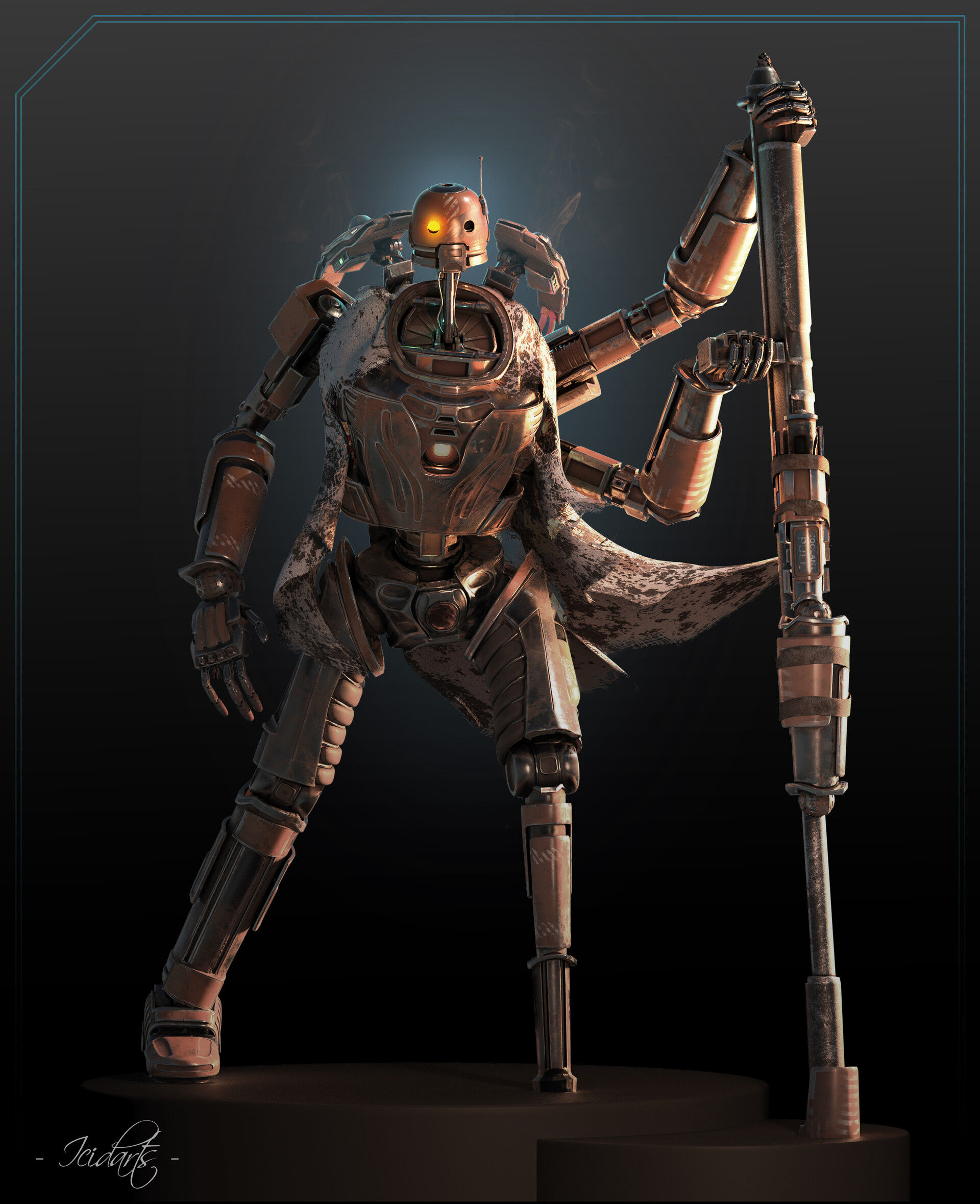 Well Its been a lot of work but I have finally managed to get this robot out.Completely rigged, textured and modeled by me as well as the render.As it can